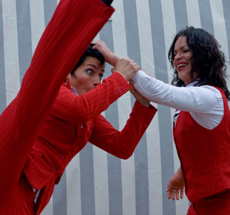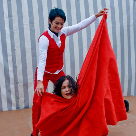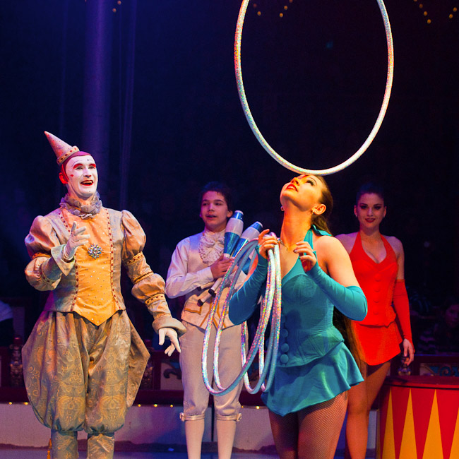 Die Zirkusartisten geben ihr Bestes, um uns einen vergnügten Abend zu bieten.