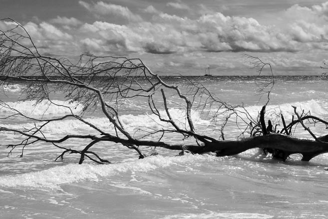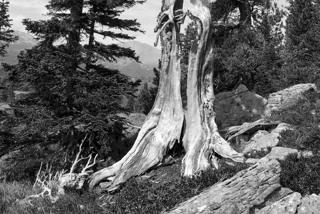 Es war Juni und noch ziemlich kalt, als ich am Strand der Ostsee-Insel Möhn spazieren ging. 2 riesige, im Wasser liegende Baumruinen weckten meine Aufmerksamkeit. Im darauf folgeenden August fand ich bei einer Wanderung in den Kärntner Nockbergen 2 verfallene Baumriesen.