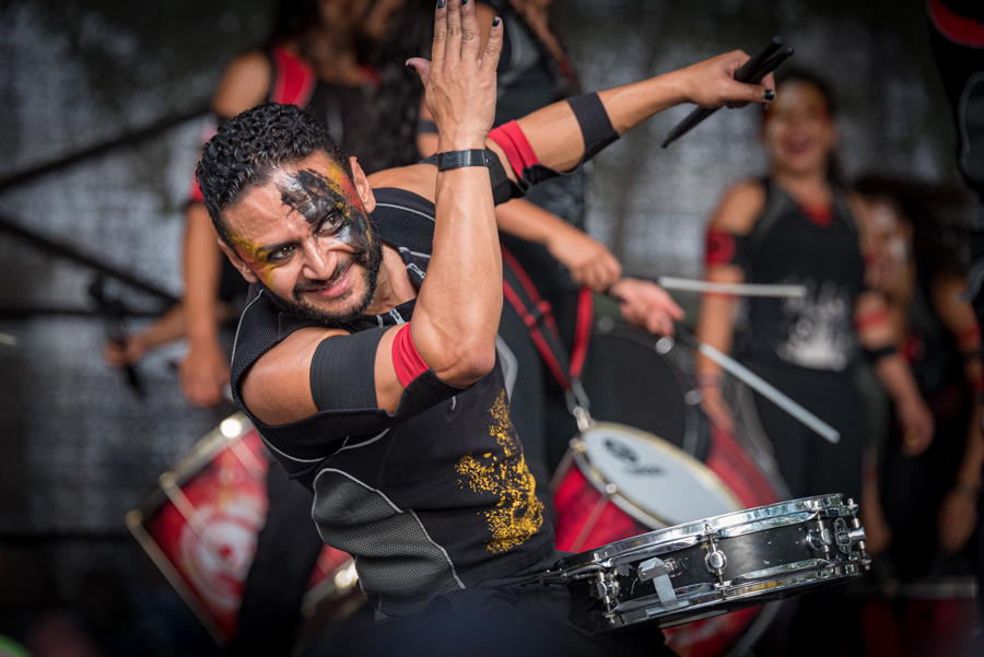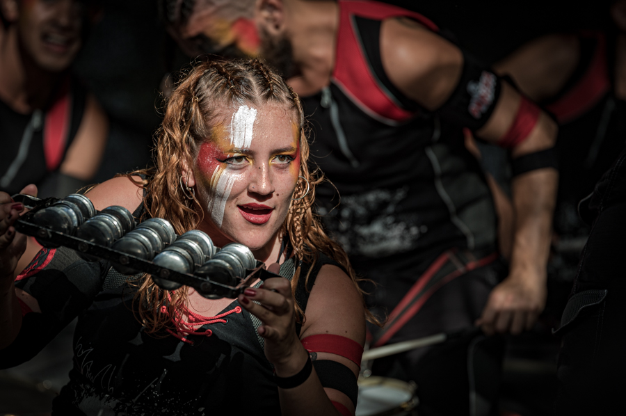 AAINJA aus Kolumbien zeigte brachiale Dynamik, bunt-düstere Farben und begeisternde Spielfreude, eingefangen beim 28. Sambafestival in Coburg.