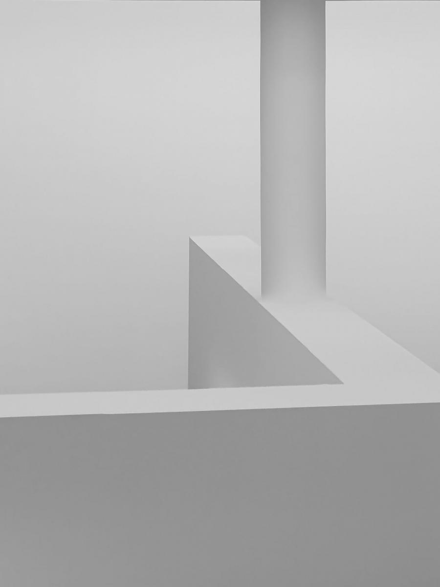Reduktion auf essenzielle Formen, klare Geometrie, obsessive Nutzung von Weiß als